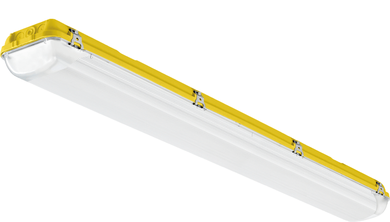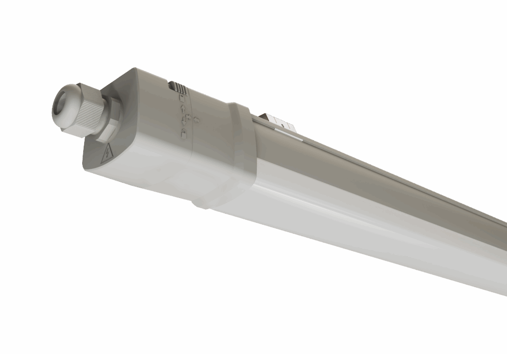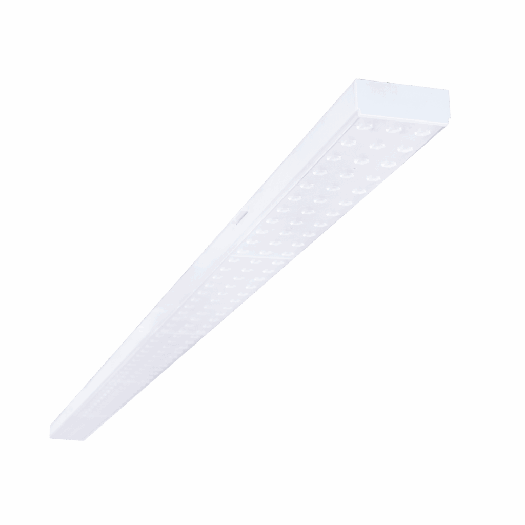 Leistungsfähige, modulare LED-Lichtbandleuchte für Hallen. Hohe Effizienz, zertifiziert und einfache Montage.