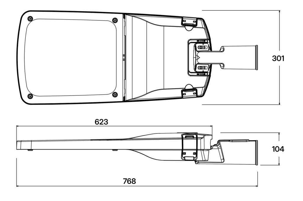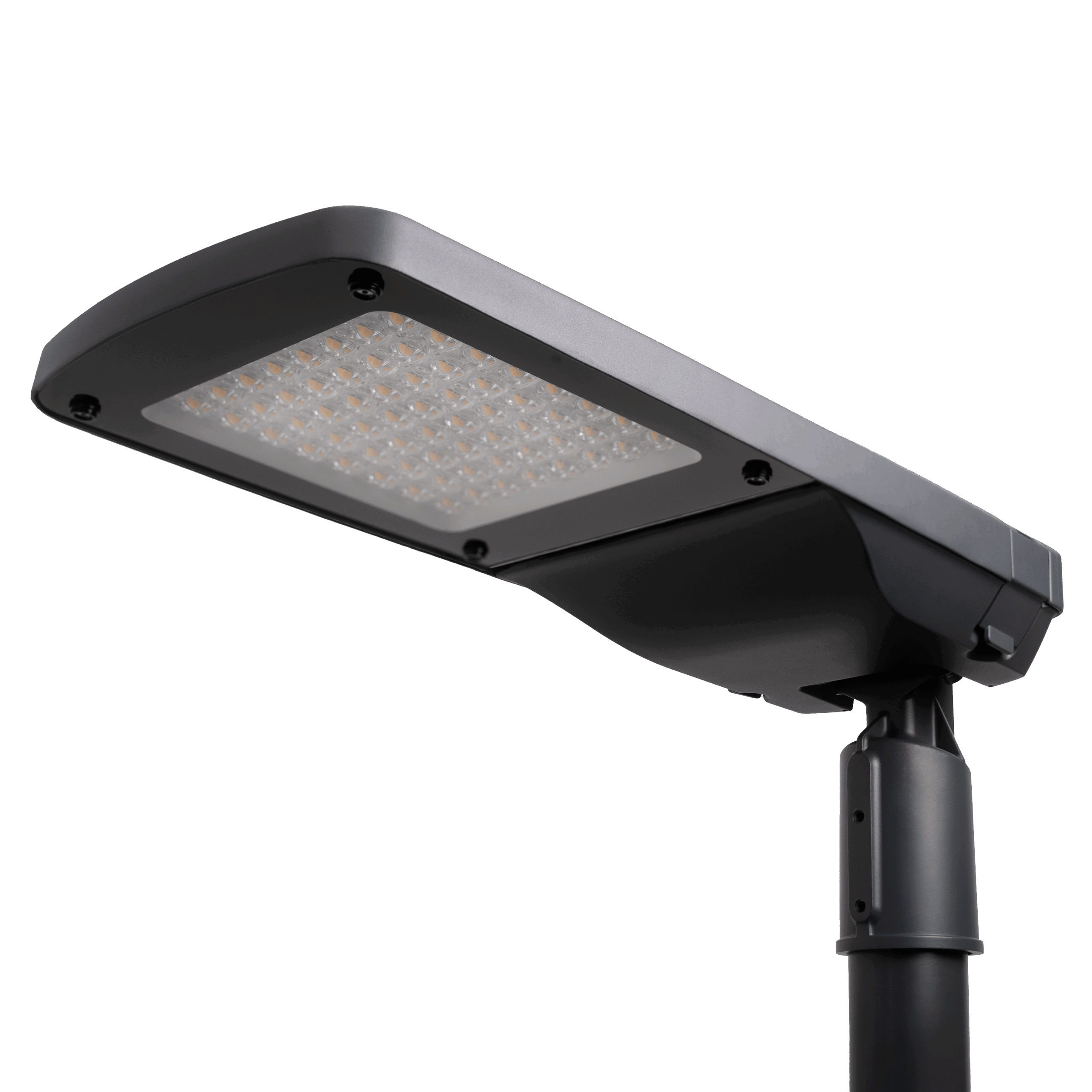 Die LED-Mastleuchten STREET sind für die normgerechte, gleichmäßige und wartungsarme Ausleuchtung von Verkehrs- und Außenflächen ausgelegt. Sie verbessern Sichtkomfort und Verkehrssicherheit in öffentlichen und gewerblichen Anwendungen. Der verstellbare Mastzopf Ø 76 mm ermöglicht Mastaufsatz- oder Mastansatzmontage. Geeignet für Haupt-/Nebenstraßen, Rad- und Gehwege, Parkplätze, Werksstraßen und Industrieareale. Addressierbar über DALI – weitere Varainten mit D4i verfügabar.